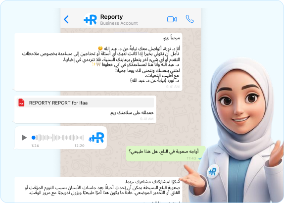 | تواصل بين د. نورة “طبيبة الأسنان الافتراضية” والمرضى | احصل على تقريرين يومياً |